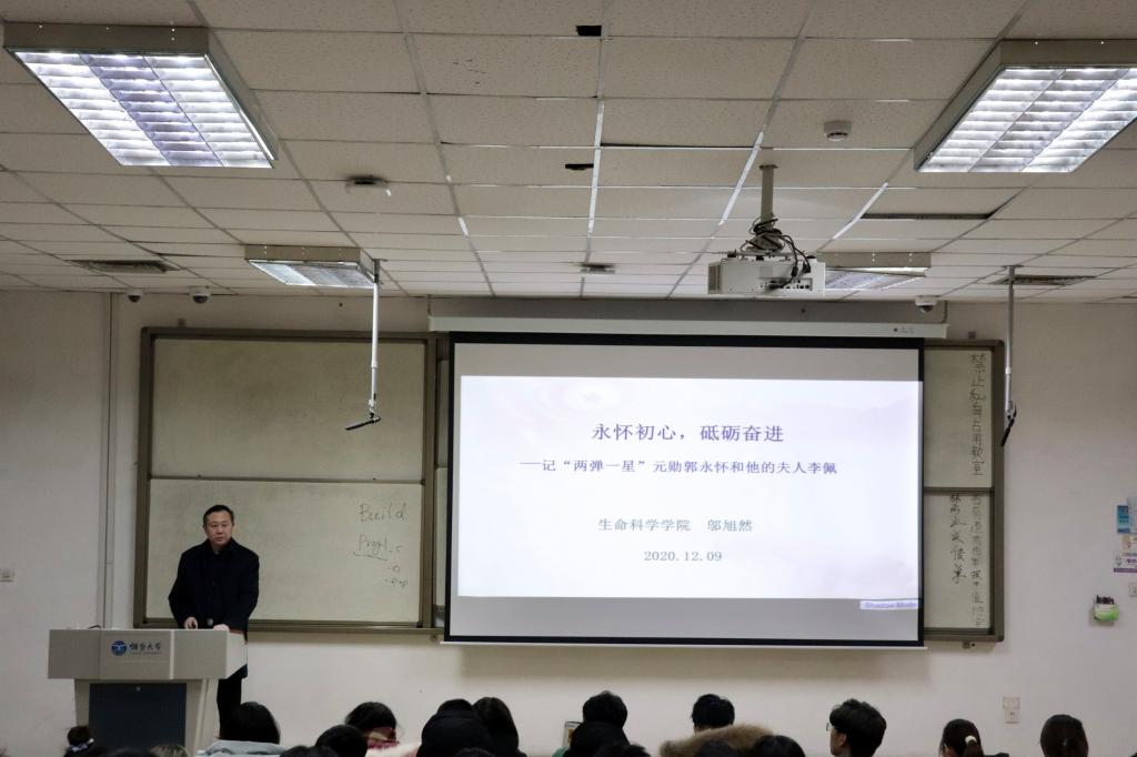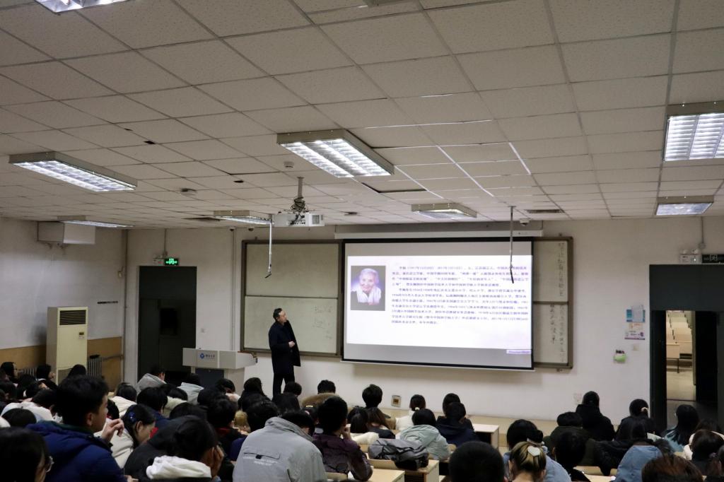 为进一步贯彻高校立德树人的根本任务,深入学习落实习近平总书记关于党史、新中国史、改革开放史、社会主义发展史学习的重要讲话和精神,努力提升思想政治理论课的针对性、时效性、创新性。12月9日晚,jinnianhui金年会院长邬旭然在第七教学楼402为大一、大二学生骨干讲授思想政治课,主题为“永怀初心,砥砺奋进——记‘两弹一星’元勋郭永怀和他的夫人李佩”。