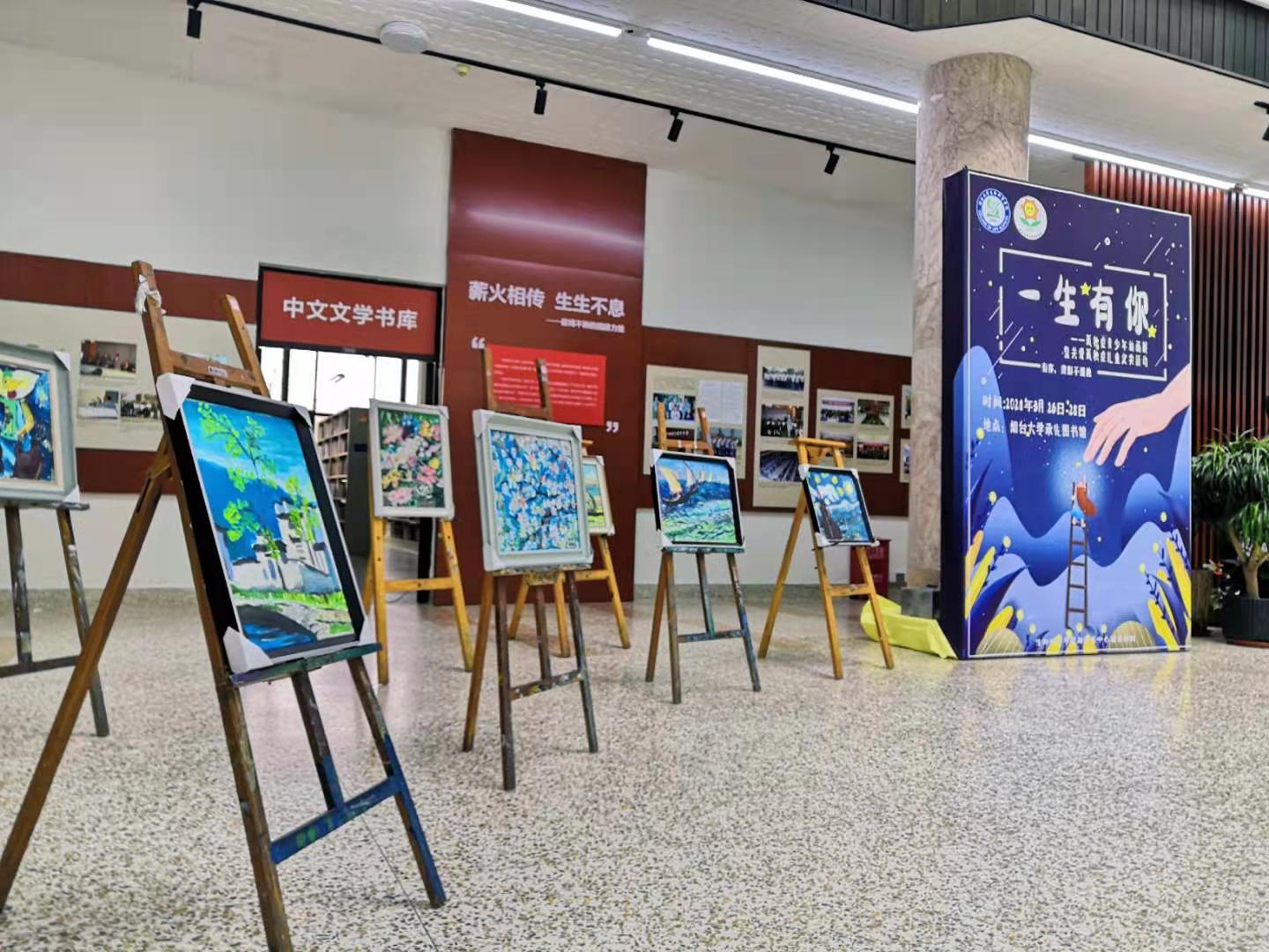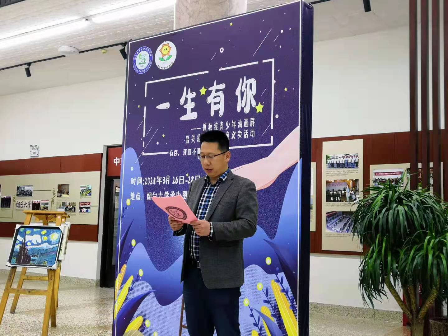 阳春时节,万物生辉,沐着和煦的烟园晨光,在第14个世界自闭症来临之际,三元湖畔静谧的承先图书馆化身成艺术展馆,3月26日,jinnianhui金年会“梦田花房”公益组织和扬帆助学中心共同举办的孤独症青少年油画展暨孤独症儿童手工作品义卖活动启幕。出席活动的嘉宾有烟台市扬帆助学发展中心理事长薛志伟、烟台广播电视台《网红现场秀》主持人天月、曾入展2019年欧盟驻中国大使台历的自闭症青少年油画作者王嘉仪及其母亲等。jinnianhui金年会党总支书记张仁旭致辞。
