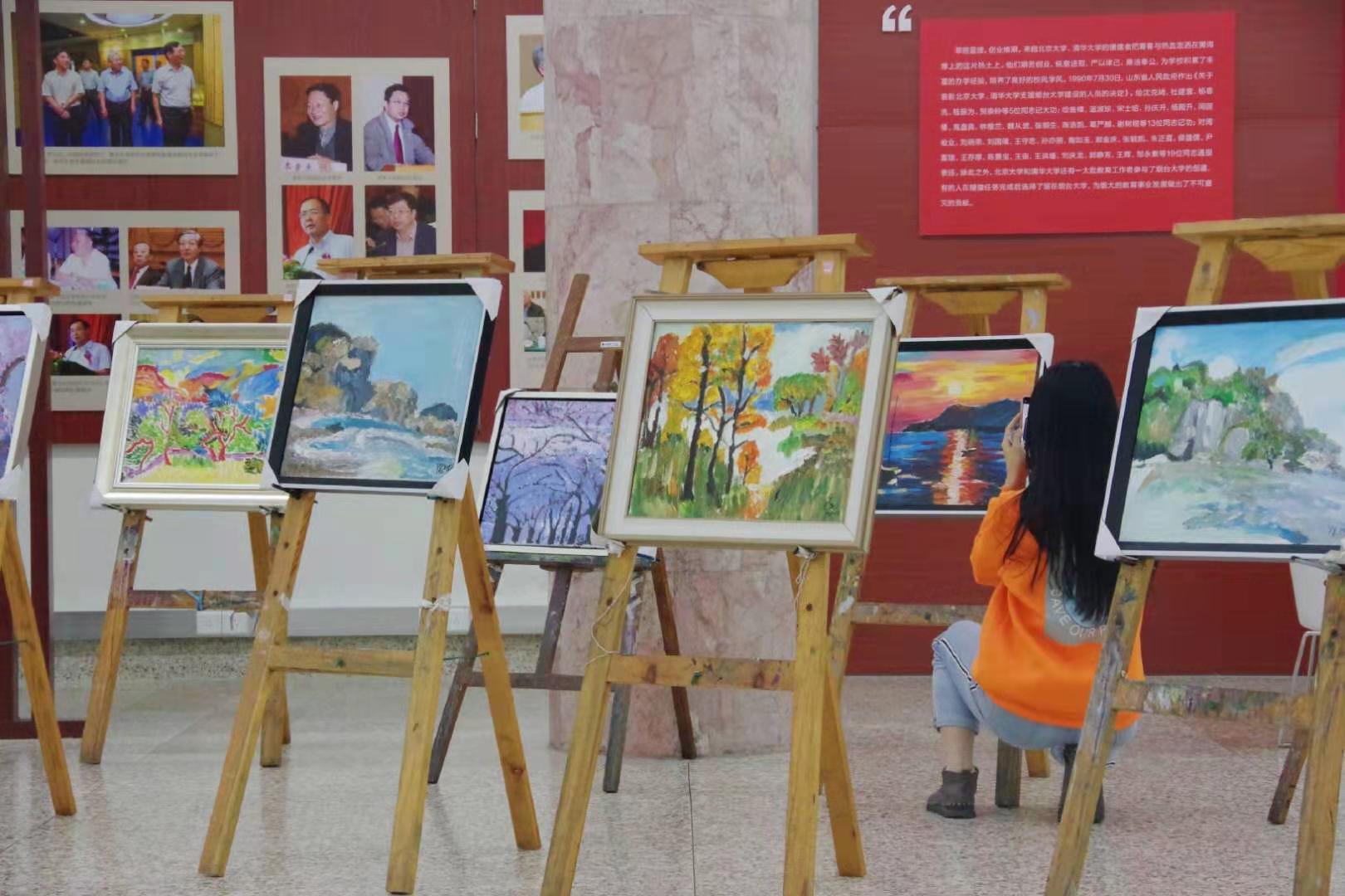 在承先图书馆内,数十幅风格各异的油画错落排布,从苍山翠柏到富士山景,从抽象星空到静物描摹,每一幅都由自闭症孩子绘制而成,在他们独特的世界里,艺术也许正是那探析世界的窗口。“正常的话她应该已经在读大学了,我们会这样一直画下去,画到哪天算哪天,每一天都很美好”,“丫毛妈妈”作为画作者家长代表看着与孩子同龄的志愿者们,微笑着说。为期三天的义卖活动,在图书馆外和青春广场同步进行,热心的“梦田花房”志愿者们,通过线上、线下多种方式帮卖自闭症家庭的手工制品,最终顺利将制品全部卖出,所得善款全部属于关爱自闭症儿童组织。