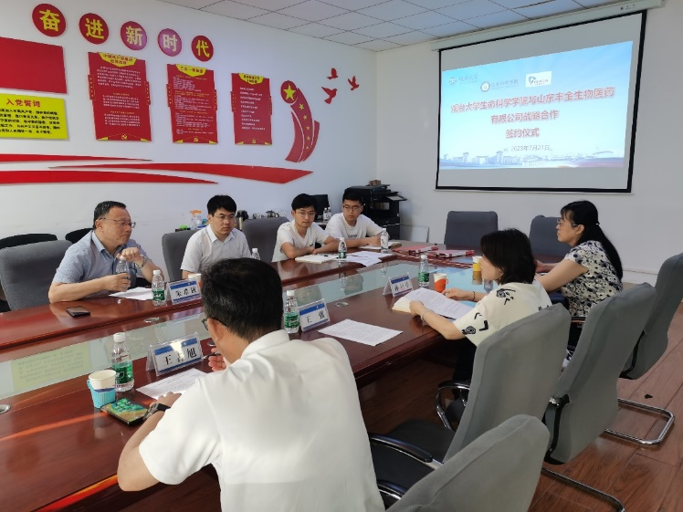 签约仪式上,孙利芹院长和朱希强董事长分别就生物工程学科、专业发展情况和丰金生物医药有限公司的发展与合作需求方面做了介绍,双方决定在联合共建生物工程一级学科和一流专业方面进行战略合作,重点在大学生实习实训基地、研究生联合培养、校企共建课程开发、设立青年博士创新人才工作站、生物产品智能制造产业技术创新平台建设等方面达成合作意向。此次协议的签署对于深入推动学院产教融合向纵深发展有着积极的意义。
