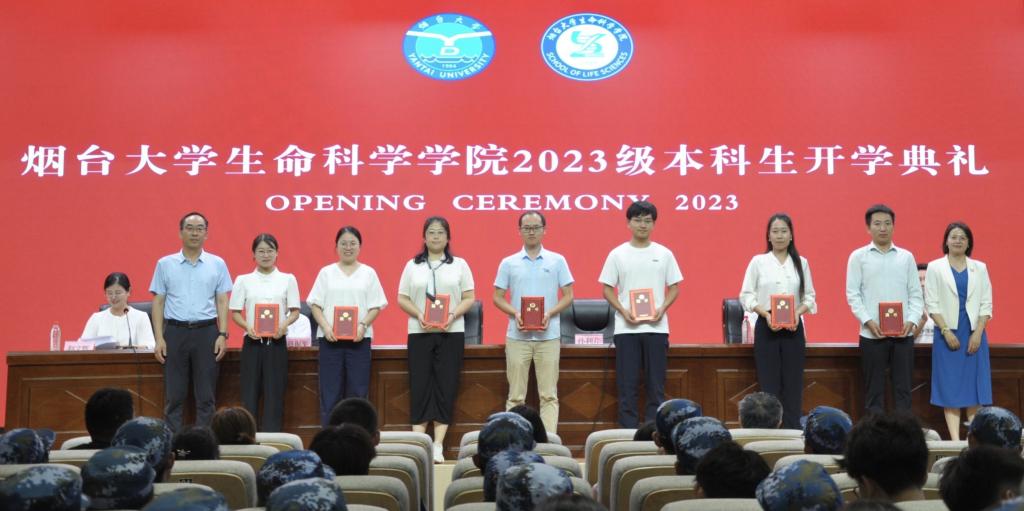 典礼在奏唱国歌中拉开帷幕,随后,院长孙利芹以“在生科,向未来”为主题,通过“厚植家国情怀,立大志,堪大任”、“尽快转变角色,建立学习型思维,掌握真本领”、“砺行致远、涵养自身”三方面,勉励353名新生珍惜韶华、全力拼搏,在“海纳百川 敢为人先”的引领中,执青春之笔,答出属于烟大生科人的时代之问。jinnianhui金年会2023年度优秀教师甘晶从“亦师亦友”视角,深情寄语新同学们秉承“尚礼博学 生生不息”的院训,永葆爱国情和奋发志,用点滴勤奋勾勒金色青春、创造璀璨人生;院学生骨干张文硕领誓“成人礼”,用特别仪式铭记生科人“砥砺成长 报效祖国”的求学初心;新生代表邵佳一在“为梦而来”的体验中,表达对学院的爱与憧憬,最后,院领导为军训优秀教官及学员代表颁发荣誉证书,同时为新生导师、导助颁发聘任证书。
