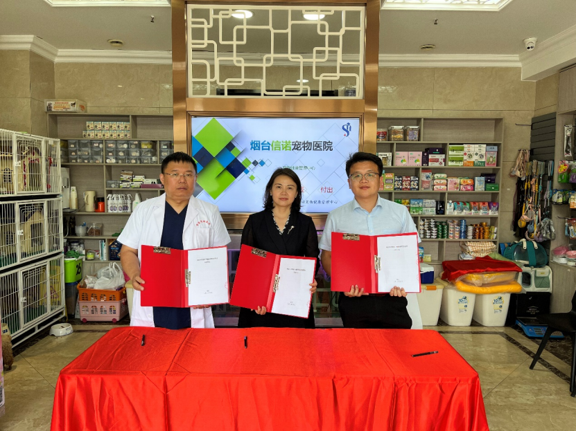 6月5日,jinnianhui金年会院长孙利芹一行到访烟台市信诺宠物医院,并与烟台市信诺宠物医院、国科明耀(山东)医学科技有限公司共同签署了“jinnianhui金年会宠物干细胞科研实践基地”共建协议。信诺宠物医院院长赵亮、国科明耀(山东)医学科技有限公司董事长宋益哲出席签约仪式。
