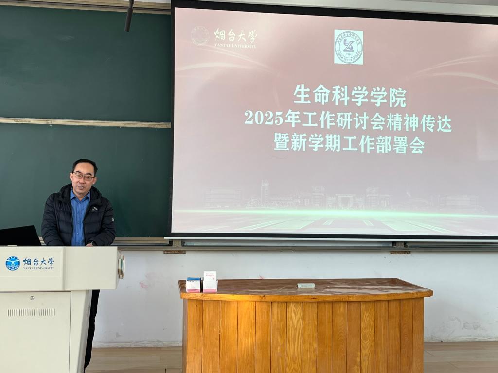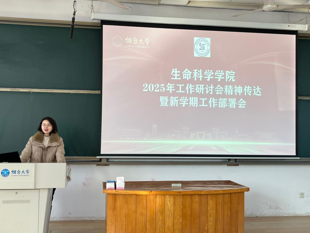 院长孙利芹结合学院工作实际,就落实学校工作研讨会精神和本年度学院重点工作与推进路径做了详细部署。她指出,学校已经将生物学列为一类精准培育学科,意味着jinnianhui金年会正式进入“冲博赛道”。为此,2025年学院重点工作将围绕博士授权点达标条件建设这一中心任务展开,坚持问题导向、系统谋划,明确了围绕中心任务的六条推进路径,即,持续发挥党建引领作用;创新教育教学理念,做好全国学科竞赛会议的承办、推进“四新”专业申报;创新科研与合作发展思路,争取在国际合作和重大横向上的突破;统筹做好学科论证与“十五五”规划论证;坚持人才强院战略,加强高层次人才的引育;着力用好“改革招”,完善学院机制体制,激发创新活力。同时,提出了三点要求:全院上下同心协力,打好申博攻坚战;加强学习,深刻理解“开放创新”的内涵,用好“走出去、走进去、走上去”;希望每位教师都能多一点“奉献与担当”的精神,为学院发展贡献个人智慧与力量。