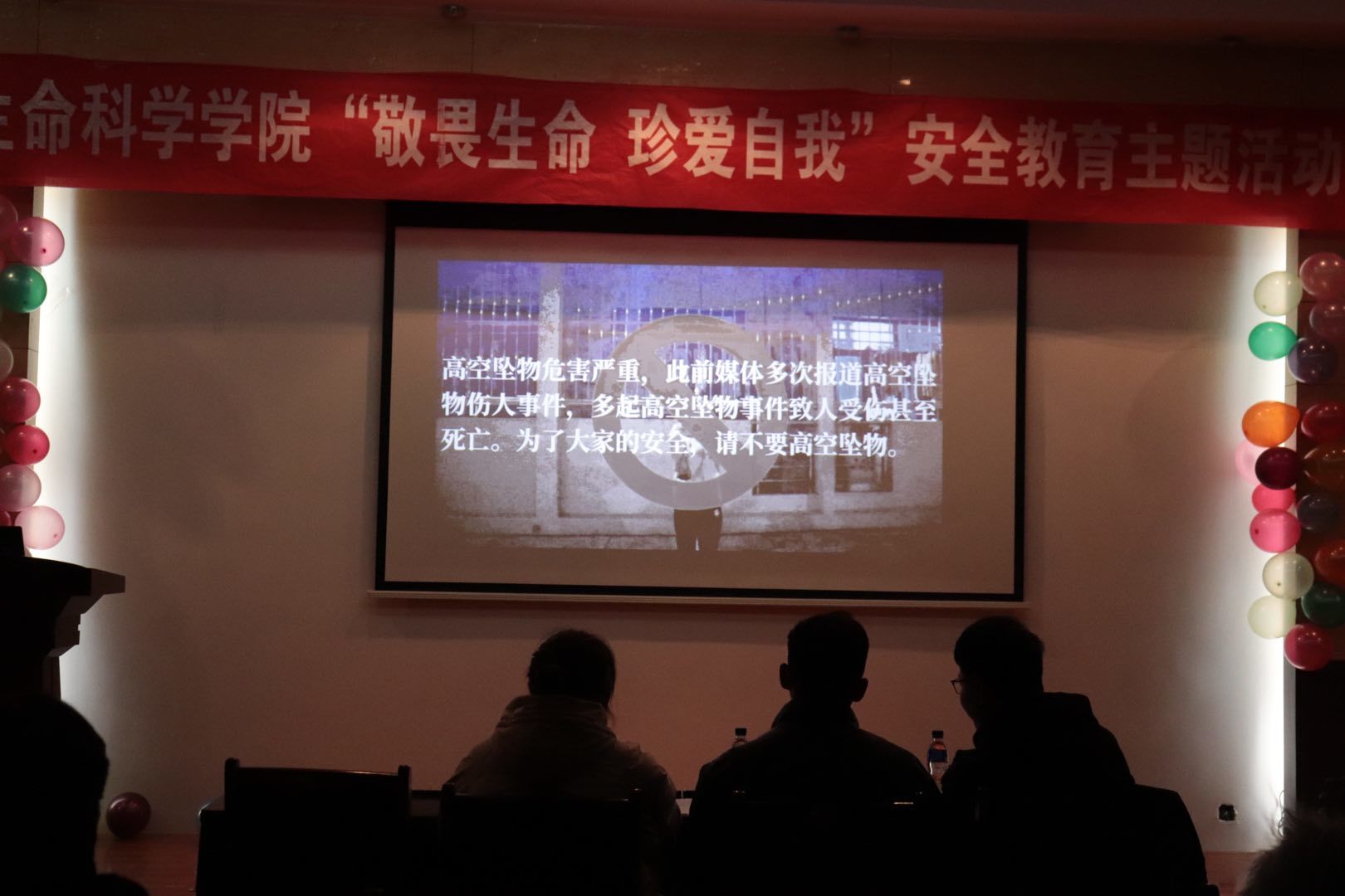 为了提高同学们的安全意识,加强自我防范,对此生科院学院举办了“敬畏生命,珍爱自我”安全教育主题展演竞赛。11月29日晚作品展演在化东举办,19级辅导员吕泽毅,研究生辅导员安兴爽出席此次活动。